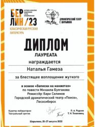 Труппе нашего театра посчастливилось поработать над сложнейшим материалом Михаила Булгакова «Записки на манжетах» в тандеме с режиссёром Бари Салимовым (Москва).