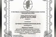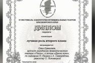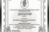 - Диплом лауреата в номинации «Лучшая главная мужская роль» — Александр Ряписов (режиссёр театра)