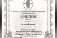 - Диплом лауреата в номинации «Лучшая главная мужская роль» — Александр Ряписов (режиссёр театра)