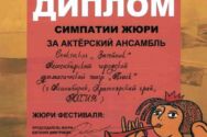 Диплом жюри в номинации «Актерский ансамбль» — таков итог участия театра «Поиск» в фестивале «Подмосковные вечера». (Спектакль по пьесе В. Розова «Затейник», режиссёр А. Ряписов)!