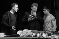 Режиссёр Павел Зобнин пьесе «Смерть Тарелкина» персонажей, напротив, прибавил. И каждому из них сочинил целый каскад трюков. Сценограф Евгений Лемешонок создал образ темного подвального чрева огромного дома, где среди проржавевших урчащих труб только оборотни в погонах и без обитать и могут. Во втором акте подвал этот оборачивается современной ментовкой, но сути своей — чрева ненасытного — не меняет. Царит здесь громокипящий Расплюев (Петр Незлученко, спец-приз Ольги Остроумовой). И порой кажется, что он и есть человеческое воплощение этого чрева, оборачивающегося то подвалом, то ментовкой. Спектакль намеренно избыточный, неугомонный, порой очень смешной, но не страшный. Оборотничество здесь сродни актерству, и каждый оборотень по-своему обаятелен.