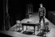 Приз «За лучшую женскую роль» разделили две юные актрисы: Александра Комлева за роль Анны и Анна Дунаева за роль Марии в спектакле «Карл и Анна» Леонгарда Франка (режиссёрДенис Хуснияров, Русский драматический театр «Мастеровые», г. Набережные Челны). Они сыграли историю двух подруг, ждавших одного и того же мужчину Карла с Первой мировой: жену Анну и безнадежно влюбленную Марию. Сюжет бродячий: через много лет возвращается из плена солдат, уверяющий, что он Карл, которого изменила до неузнаваемости война, но он до мелочей помнит жизнь с любимой Анной. Мария не верит, но Анна в конце концов приняла его как мужа и полюбила. А потом возвращается настоящий Карл. Дениса Хусниярова заинтересовали не мелодрама или детектив, которые обычно извлекают из этого сюжета. Он поставил спектакль о том, что с войны нельзя вернуться, и что любовь сильнее смерти. Лаконичная холодно-серая сценография Елены Сорочайкиной — вздыбленный войной пол когда-то уютного дома, рассеченный провалом, или окопом, или дорогой, уходящей из мирной жизни. Теплый свет Александра Рязанцева, рисующий профили героев — живых на фоне смерти. Статичные мизансцены, срывающиеся в экспрессию танца. Тишина долгих пауз в немногословном диалоге, взрывающаяся грохотом боя или отчаянным зонгом. Нарочито эстетский режиссёрский рисунок, снимающий даже намек на сентиментальность. И пронзительное, подлинное, каждый миг наполненное существование актеров, когда событием становится тень улыбки, взгляд, неуверенное прикосновение… Жюри могло бы отметить работу всего квартета, но у Алексея Ухова и Михаила Шаповала оказался безоговорочный конкурент.