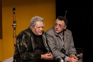 Пьеса относится к так называемым «комедиям угрозы» – жанру, где под абсурдным, иногда даже смешным диалогом прячется нешуточная тревога. Смех, возникающий от нелепости ситуации, очень быстро сменяется ощущением болезненного беспокойства. Эту неоднозначную и сложную эмоциональную конструкцию хорошо уловила и перенесла на сцену команда спектакля «Сторож» Городского драматического театра «Поиск» (г.Лесосибирск).